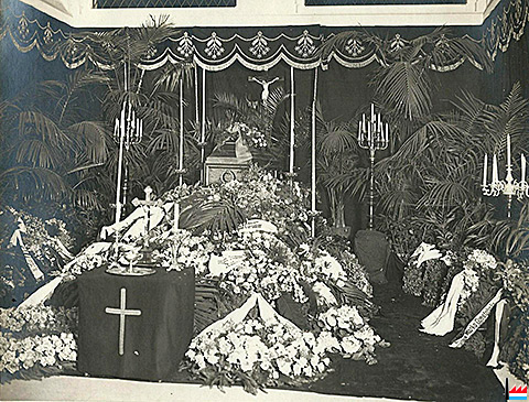 Dem säi Begriefnis 1919 war relativ opwänneg, einfach well en Patron vu villen Leit a Buergermeeschter war.
