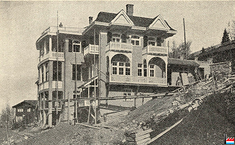 Clinique Monte Sano, du Dr de Rin, Villars-sur-Ollon - corps de bâtiment en briques PKB - architecte: Borel & fils, entrepreneur: Ch. Fantoli (Collection: industrie.lu)