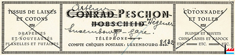 | <=1891 | ![]() Schmitz-Fischer, Luxembourg, tissus en gros à J. Peschon, Hobscheid - 1891 (Collection: industrie.lu) |