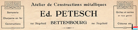 | 1931 | Atelier de constructions métalliques Ed. Petesch rue Siegefroid Bettembourg |