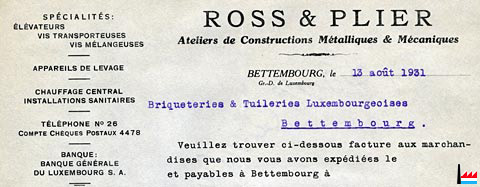 | 1935 | Ateliers de constructions Ross & Plier 23 rue Collart Bettembourg, tél: 26 |