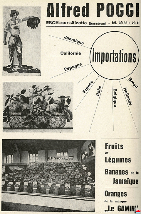 | 1946 | Société Luxembourgeoise pour le Commerce de Fruits et Primeurs S.A., Esch/Alzette, membre du Groupement des Importateurs Luxembourgeois de Fruits et Primeurs |