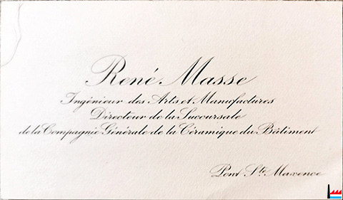 | <=1928 | ![]() René Masse, ingénieur des Arts et Manufactures, directeur de la Succursale de Compagnie Générale de la Céramique du Bâtiment, Pont-Sainte-Maxence (Collection: Wilhelm Schommer) |