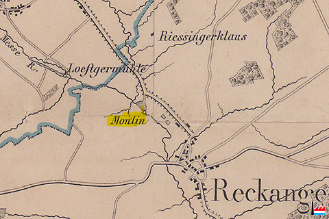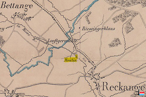 Loeftgesmühle - Lëftgesmillen (Bettinger Mühle) - Moulin de Reckange (Carte Jean-Baptiste Liesch - 1862)