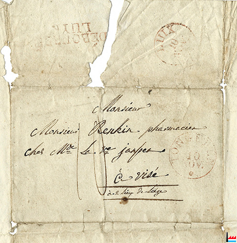 Monsieur Renkin pharmacien chez Mme la Ve Jaspers à Visé à 2 lieux de Liège