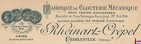 | <=1907 | Fabrique de Clouterie Mécanique Rheinart - Crépel, Charleville Chaînes soudées par procédé électrique |