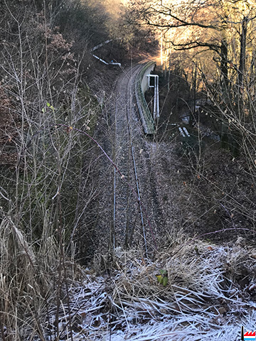 Bahnhof Rheinböller Hütte - rechts die Eisenbahnlinie Richtung Rheinböllen (Fotos: 28.12.2018 jmo)