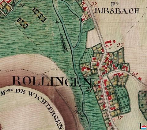 ![]() Forges de Rollingen - 1777 (Carte de Ferraris - Bibliothèque royale de Belgique - 2010) |