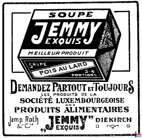 | 1.12.1917 | Jemmy's Suppen und Würze-Fabrik Inhaber: Jemp Roth, Diekirch Suppen-Würfel und Würzepräparate Gegründet am 1. Dezember 1917 Wo? Inhaber: Roth Jean Pierre, Diekirch (Inscription au registre aux firmes N° 1076 - du 12 décembre 1917) |