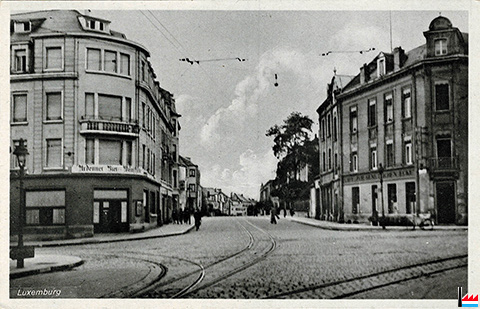 | <=1941, 1942 | ![]() Luxemburg, Longicherstraße - Coin route de Longwy / avenue Monterey - Bd Grande-Duchesse Charlotte, Luxembourg (Carte postale: Collection: industrie.lu) ![]() Ardenner Bier - Weinstube; Luxemburg, Longicherstraße 1 (= Rotisserie Ardennaise, Luxembourg, 1 route de Longwy) (Detail de la Carte postale: Collection: industrie.lu) Ed. Wampach ![]() Gegenüber: CAFE ZUR GEMÜTLICHEN ECKE, Luxemburg (Detail de la Carte postale: Collection: industrie.lu) |