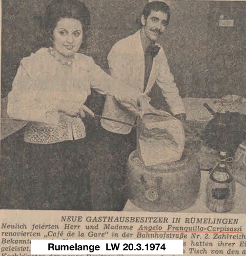 | Bevor Angelo Franquillo-Carpisassi nach Rümelingen kam, besaß er seit 1972 die Pizzeria „La Gondola“ in Düdelingen, 96 Avenue Grande-Duchesse Charlotte. | ||