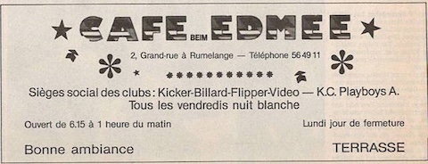 Handballklubs. …. Das Café de la Gare finden wir an der Adresse 2 Grand-Rue. In diesem befindet sich auch der Sitz des Handballclubs. siehe hier LW vom 10.6.1970 |