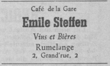 Falsche Angabe der Adresse !!! In den folgenden Artikeln und Aufzeichnungen wird für dieses Café stets die Adresse „Bahnhofstrasse , rue de la Gare“ angegeben. Es muss hier jedoch heißen „Grand-rue“, da um diese Zeit die rue de la Gare bereits den Namen rue des Martyrs trägt. Im Artikel „Signification de Jugement.“ im LW 12.1.1977 wird die Adresse mit Grand-rue angegeben. |