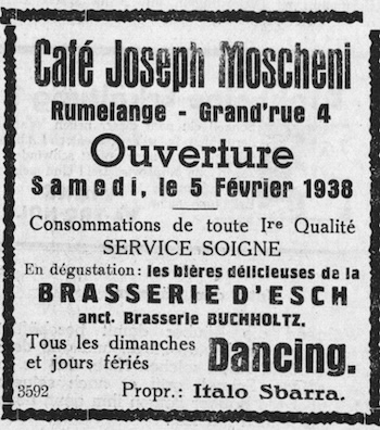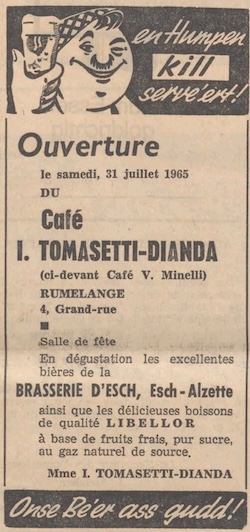 Rümelingen. Geschäftsübernahme. Am vergangenene Donnerstag hatte die Familie Franco Becca-Forzy zur Wiedereröffnung des bekannten Café-Dancing „Al-Minelli“ auf Nr. 4 in der Großstraße eingeladen. …… |