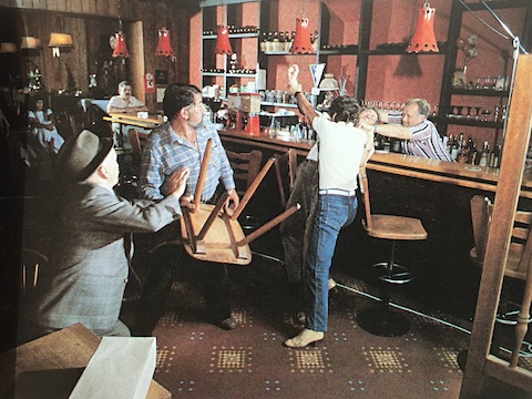 ![]() Auf diesem Foto erkennt man die mit Holzbretter verkleideten Innenwände des Restaurants das sich im hinteren Teil des Gebäudes befand. |