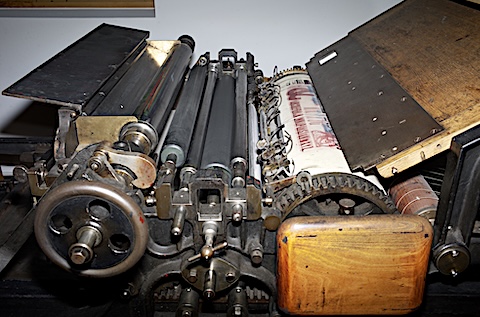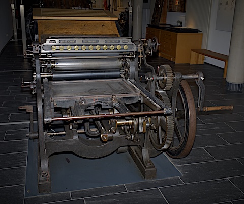 | Die Druckerpressen und Zubehör der Druckerei Breistroff. |