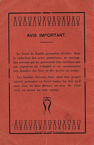 | 1938 | Familienbuch, Livret de Famille Ville de Rumelange. Dieses Exemplar wurde im Jahr 1938 ausgestellt. Vorderseite Rückseite |