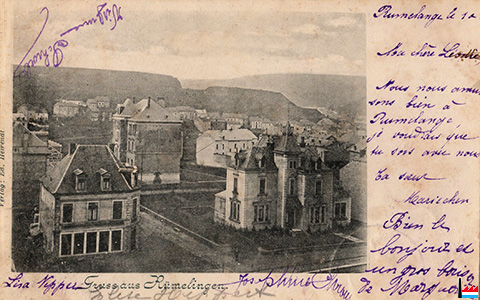 Ancienne maison de Thomas Byrne, 64 rue des Martyrs (56 rue de la Gare), Rumelange- vers 1907 (Extrait de la Carte