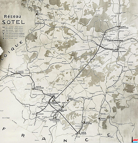 Sotel, Société Coopérative de Transport d'Energie Electrique, a été fondée le 30 novembre 1927. A l'origine, elle est une émanation des industries sidérurgiques. C'est grâce à leurs productions énergétiques excédentaires, fournis par les gaz des hauts fourneaux, que le pays entier a pu être alimenté en électricité. La SOTEL se chargeait alors d'acheminer le courant, dès la sortie des usines, par son réseau haute tension, vers les grands consommateurs industriels et le réseau public de distribution. Dans ce rôle, SOTEL a indéniablement contribué à l'essor économique et industriel du pays.