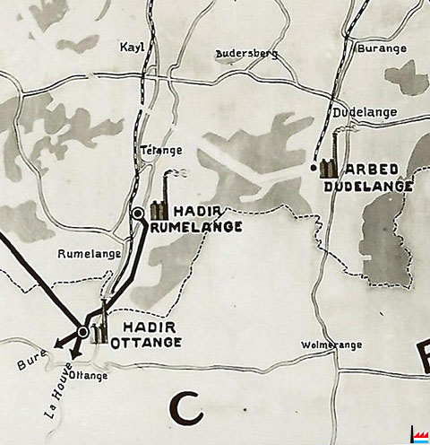 Détail du réseau SOTEL: HADIR Rumelange - HADIR Ottange - ARBED Dudelange - Bure - La Houve - (Archives Camille Aschman - Collection famille Aschman-Bodson)