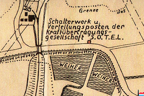 ARBED-Belval - Schalterwerk und Verteilungsposten der Kraftübertragungsgesellschaft S.O.T.E.L. (Karte 1940/44; Collection: Marcel Schlim)