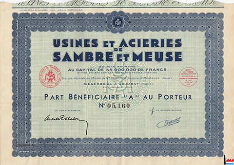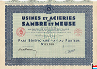 Part bénéficiaire "A" au porteur des Usines et Aciéries de Sambre et Meuse (Collection: industrie.lu)