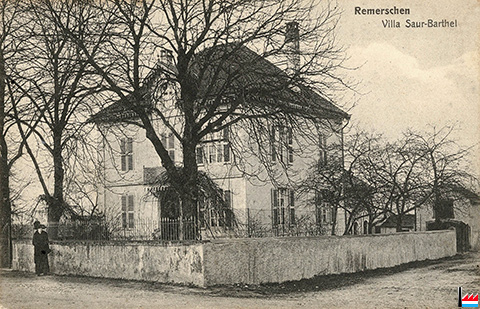 | 1909 | ![]() Saur - Barthel, Remerschen - Négociant en vins - Propriétaire - 1909 (Collection: industrie.lu) 1272 litres de vins (1908) à 24 francs la botte (fût de 43 ? litres) = 763, 20 francs |