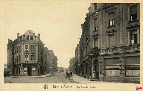 Café - Restaurant Bouquet-Wantz, Esch/Alzette, Adolf-Emilstrasse - Café Künsch (Carte postale: Nels - E.A. Schaack, Luxembourg; collection: industrie.lu)