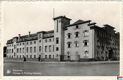 Clinique Ettelbruck - Fontaine Salentiny (Carte postale: E.A. Schaack, Luxembourg; collection: industrie.lu)