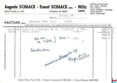 | 5.1948 | Wiltz 51 Schaack, Aug., Ernest Schaack succ., matériaux de construction, bois, combustibles. (Indicateur officiel des Téléphones - Mai 1948) |