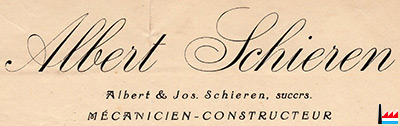 | <=1935 | ![]() Albert Schieren Albert & Jos Schieren, succrs. Mécancien - constructeur 148 Boulevard de la Pétrusse, Luxembourg-gare Tél: 3615 |