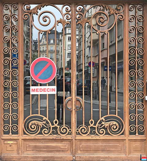 Porte en fer forgé, 11 rue Glesener, Luxembourg-Gare (Photo: 2.7.2017 jmo)