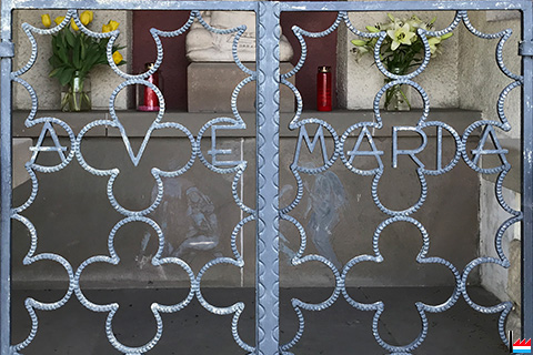 Kunstschlosserarbeit mit Ave Maria von Aloyse Decker-Schmit, Bissen an der Kapelle Paul Ley, Roost (Photos: 17.5.2017 / Collection: industrie.lu)
