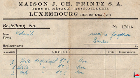 Maison J. Ch. Printz S.A. 2 - 4 rue de l'Eau, Luxembourg - Bestellung: Schmit, maître forgeron, Bissen (Collection: industrie.lu)