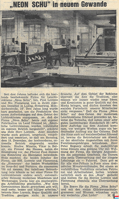 | 1959/1960 | Néon Schu, Lorentz Paul et Flammang Nic. Déménagement de Néon Schu vers: