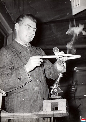 | 195? | Der deutsche Glasbläser Heinz ??? + Daubenfeld Roger, Geselle wechseln zusammen von Schaack zu NEOLUM |