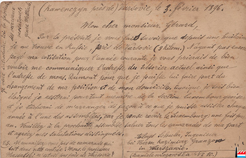 | 1896 | (Professeur (Urbain) Massalski (de Louvain), camarade de Gérard, Schuler, etc, près de Varsovie ?) | ||