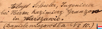 Il se trouve à 9 km de Varsovie. Adresse: bei Herrn Kazimierz Granzow (Ziegeleibesitzer in Kawenczyn in der Nähe von Warschau 30 km)