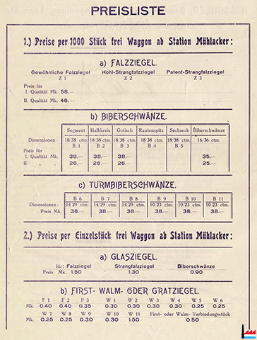 | 1.1.1913 - ? | ![]() H. Schuler, Generalvertreter der Gebrüder VETTER AG, Ziegelwerke in Pforzheim und Mühlacker - 1.1.1913 - ? - an Schmitz-Laeis, Diekirch (Collection: industrie.lu) Spezialität: Falzziegel, Strangfalzziegel, Biberschwänze aller Art, Turmbiberschwänze, Kehlziegel (System Meschede) D.R.G.M. |
