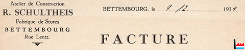 | 9.12.1934 | ![]() Atelier de Construction R. Schultheis - Fabrique de Stores (Collection: industrie.lu) Rue Lentz Bettembourg |
