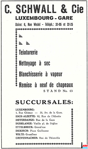 | <=1937 | Teinturerie Charles Schwall, 6 rue Wedel, Luxembourg |