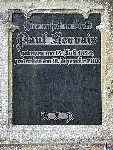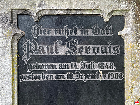 ![]() Grabmal Paul Servais (+ 18.12.1908), Waldfriedhof, Ehrang / Quint, Friedhofstraße (Photos: 14.9.2022 jmo) + (Archives Famille Servais, Luxembourg) |