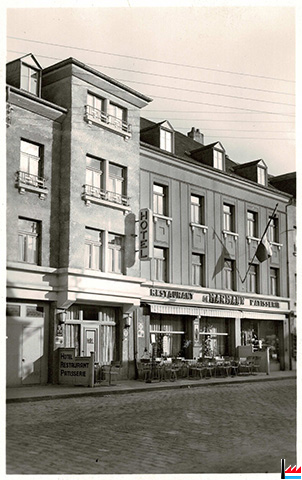 Hôtel Frieden, Wasserbillig - <=1952 (Carte postale: Impr. Cloos, Wasserbillig - Photo Nic. Sibenaler; collection industrie.lu)