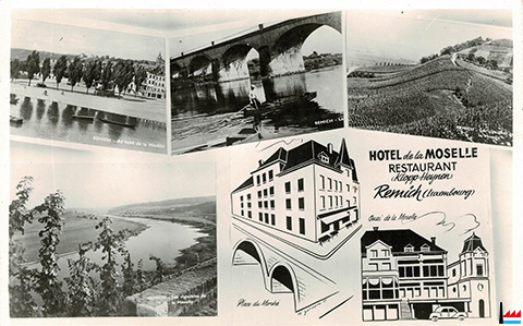 Hôtel de la Moselle, Remich, Place du Marché - Quai de la Moselle (Klopp-Heynen) (Carte postale: Edit.: Nic. Sibenaler, Luxembourg; Collection: industrie.lu)