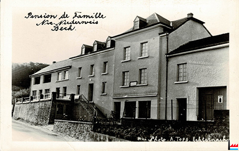 Pension de Famille Nic. Niederweis, Bech - <=1968 (Carte postale: Edition: A. Tops, Echternach, Tél: 172 - Tirage: Nic. Sibenaler, Luxembourg; collection: industrie.lu)