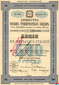 | 1915 | Société Russe pour la Fabrication de Tubes. (Belgische Gründung von Ch. & H. Chaudoir mit französischer, später auch deutscher Beteiligung) |
