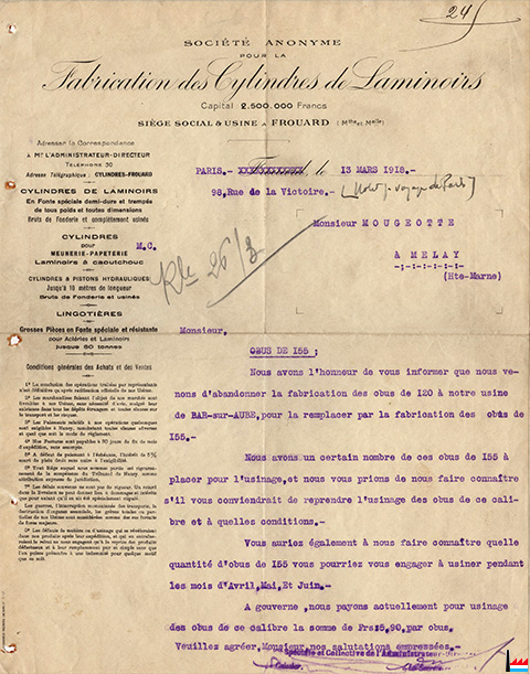 Société Anonyme pour la Fabrication des Cylindres de Laminoirs, Frouard (Facture du 13.3.1918; Collection: industrie.lu)