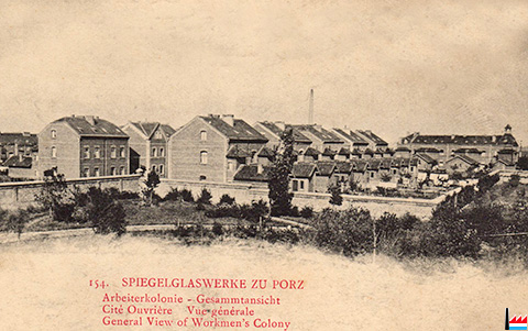 Spiegelglaswerke zu Porz: Arbeiterkolonie, Gesamtansicht, Porz (Postkarte: