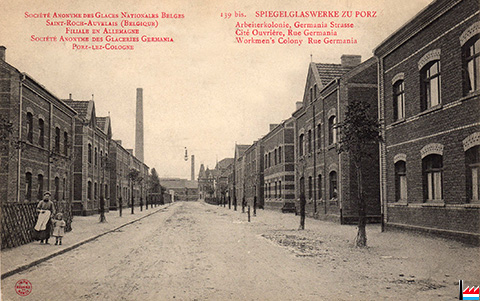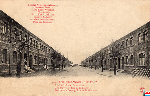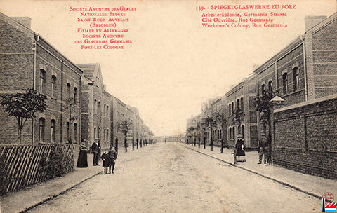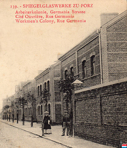 Spiegelglaswerke zu Porz: Arbeiterkolonie, Germania Straße, Porz (Postkarte: