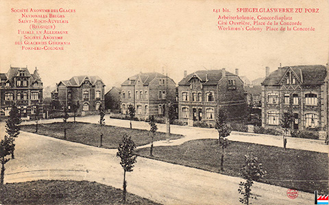 Spiegelglaswerke zu Porz: Arbeiterkolonie, Concordiaplatz, Porz (Postkarte: